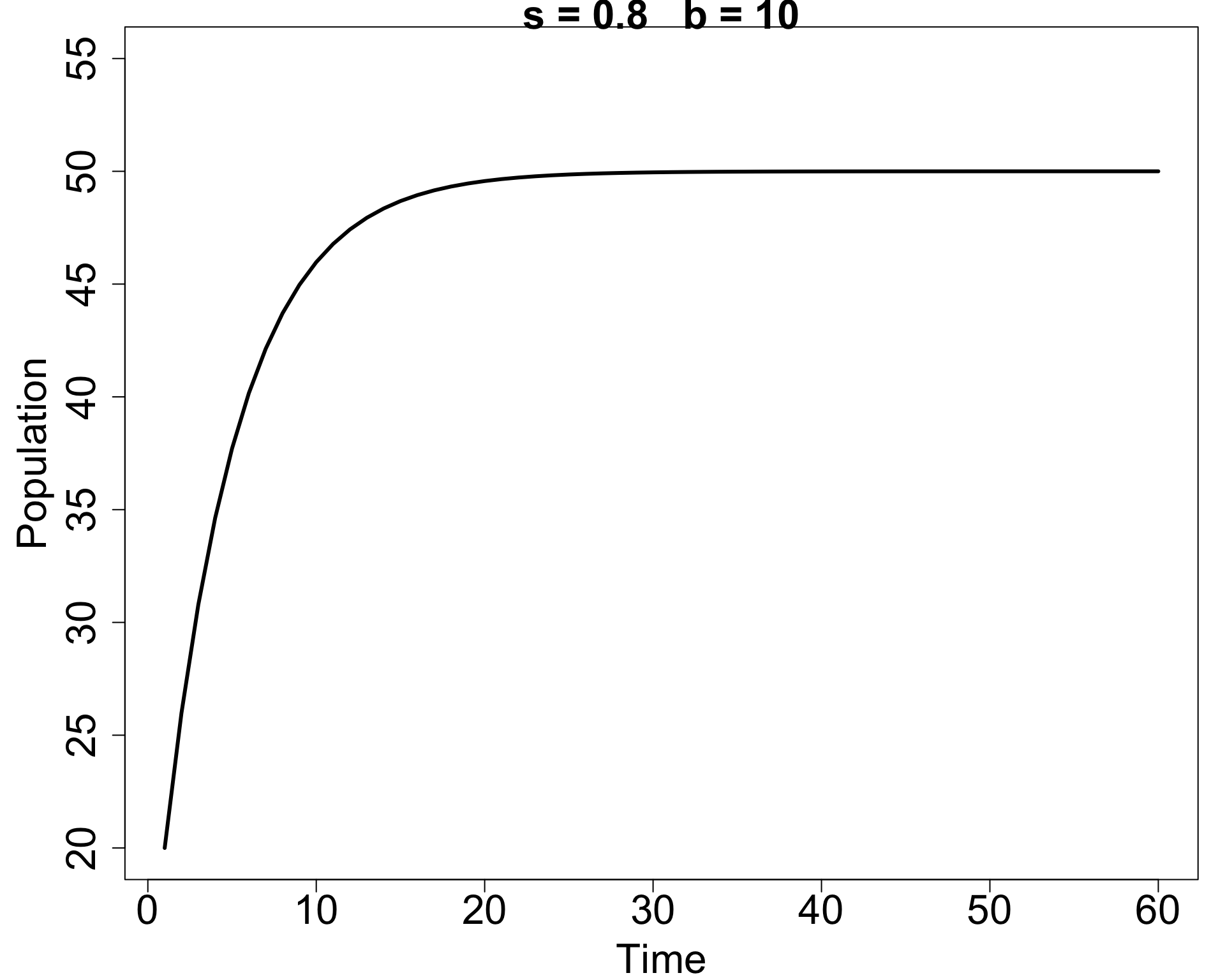 Here \(s\) is the fraction of individuals surviving each time step and \(b(t)\) is the number of new births.